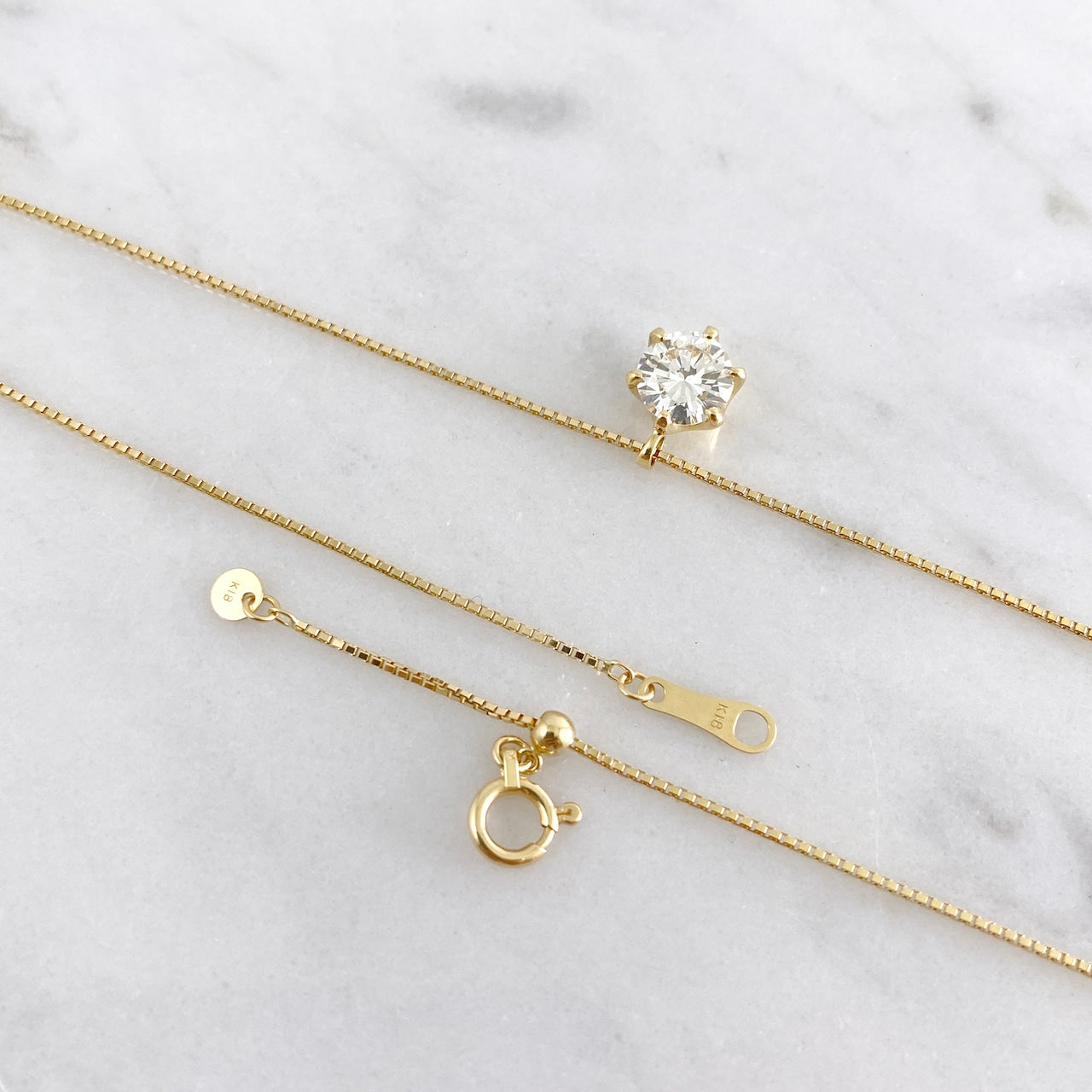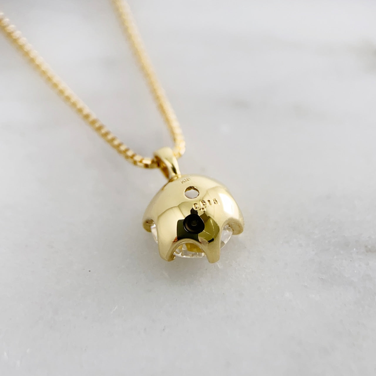 鑑定書付きK18YG一粒ダイヤモンドペンダント